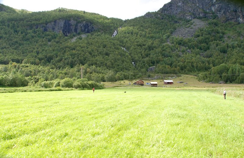 I dag var kurset på Fagerset; - en stor eng delt på midten av en traktorvei/grøft med en del buskas. Såpass høyt at hundene ikke så over det.