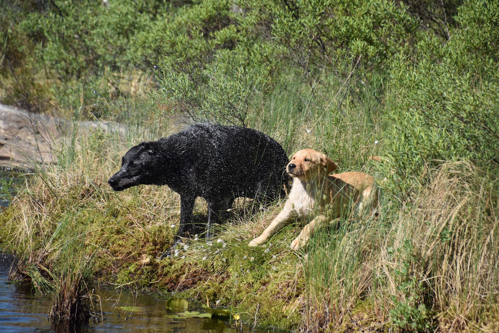 Forrige gang jeg bada var på Grand Canaria i 2007, men når det er 30 grader i en uke er det på tide å grave fram bikinien fra bakerst i skapet. Jeg vet jo hvor det fineste tjernet er, selv om det tar litt tid å komme dit. 1 time i bil og 2 km å gå, mye av veien med 8 kg valp i armene. Belønningen - vi hadde hele det flotte tjernet for oss selv, ikke et menneske å se.