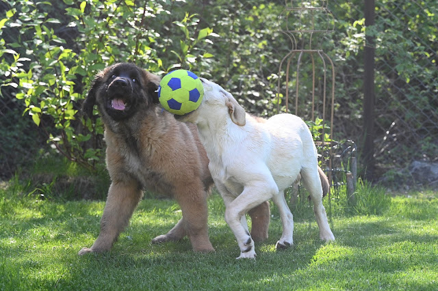 Leonbergervalp på ca 3 måneder. Jeg var litt spent på hvordan leken ville